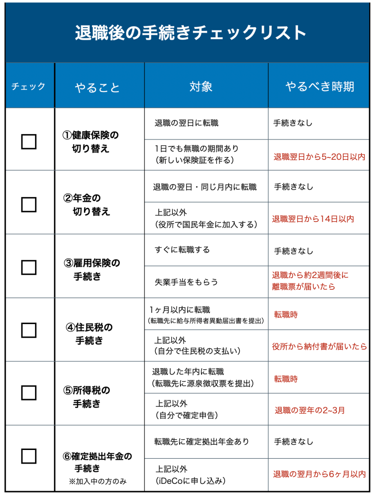 退職後に必要な手続きは何ですか?