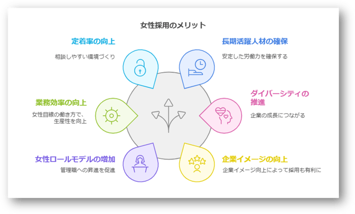 女性がサービス業で活躍することで、企業は多様な顧客ニーズに対応できるようになる。また、女性の視点を取り入れたサービス開発やマーケティングが可能になる。さらに、女性活躍推進は、企業のブランドイメージの向上や人材確保にもつながる。サービス業における女性の活躍は、今後さらに重要性を増していくと考えられる。