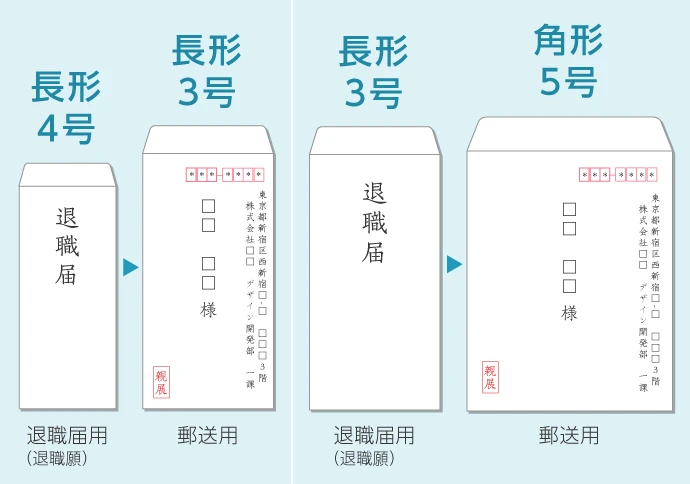 封筒のサイズは、A4判の書類が折らずに入るサイズが一般的です。封筒の材質も重要で、上司や役員に提出する場合は、厚い紙の封筒を使用するのが適切です。書き方については、宛先、氏名、所属部署を丁寧に書く必要があります。また、封筒の表面には「退職届」と明確に記入することが大切です。