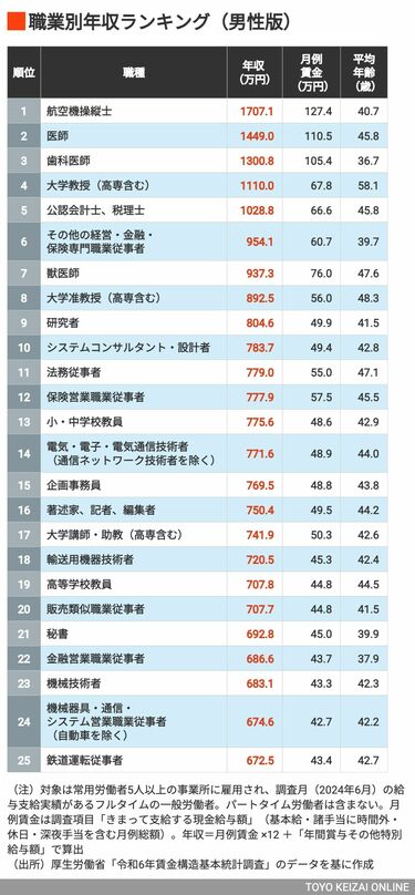 高収入の職業ランキングとは